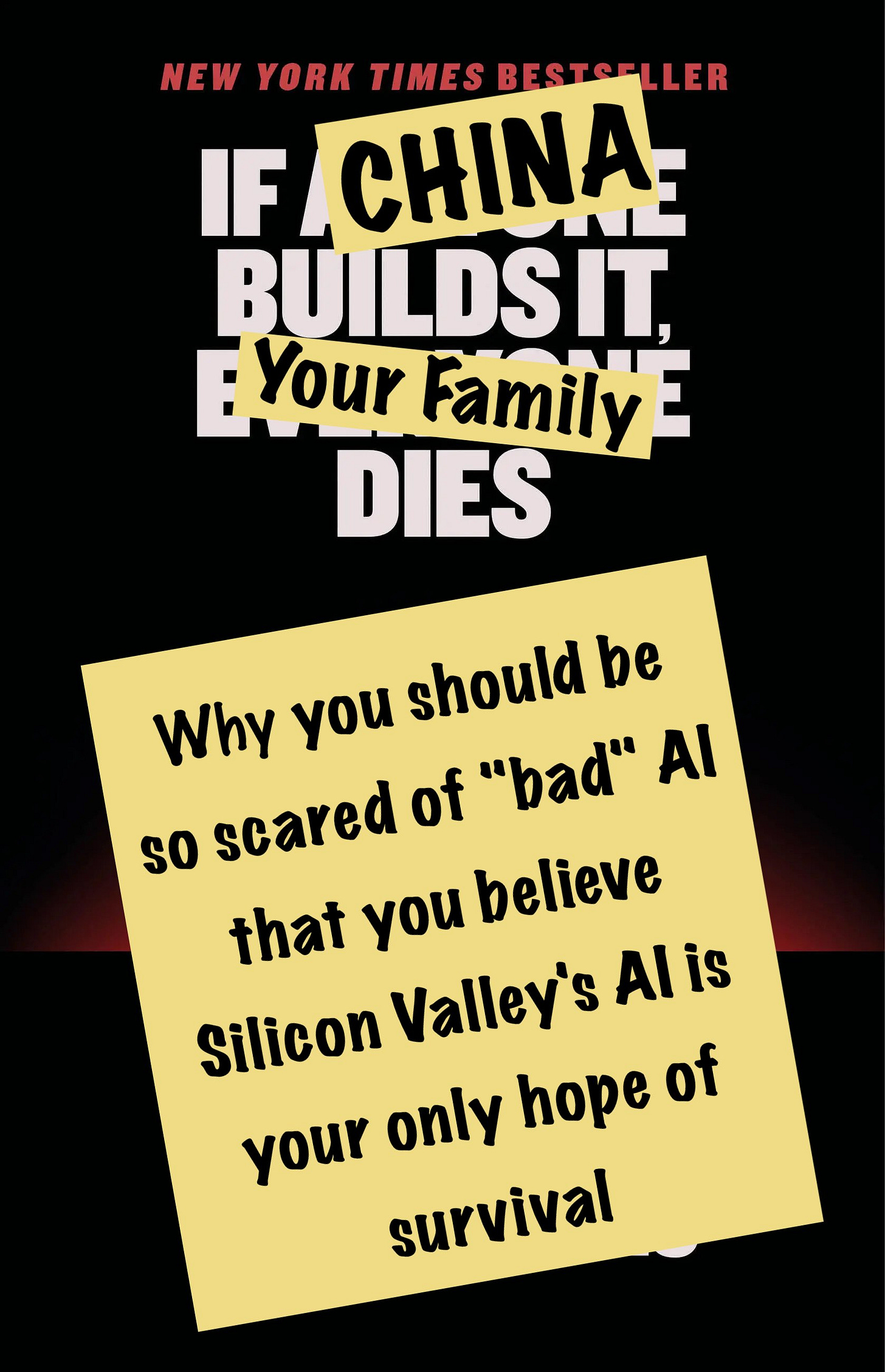 It’s a sweet setup. The Doomers get as many people as possible scared of ASI, and that fear becomes leverage to attack any attempt to slow down Silicon Valley with “if you slow us (Silicon Valley) down, then the Chinese (or adversary of the moment) will get ASI first and all that stuff you are scared of will happen to you and your family.”